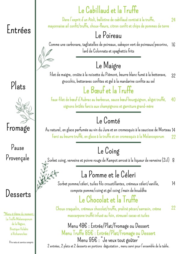 Le menu actuel ci-dessous est valable jusqu’au 16 mars inclus.
